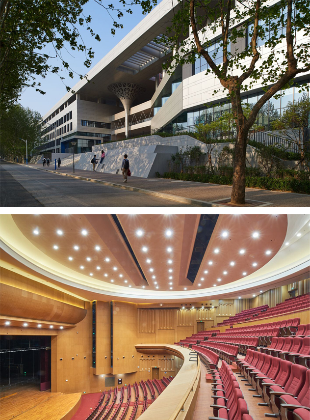 该热泵工程以绿色环保可再生的太阳能和地热能为低温热源,通过热泵机组提升能量品质,为总面积12638m2的大剧院和音乐厅提供供暖空调服务。项目建设地源井233口,总投资761万元,项目规模位于国内前列。我校基建处在该项目的建设过程中始终贯穿“安全、稳定、节能、环保”理念,选用了高效的水源热泵机组、变频水泵、太阳能集热器和蓄热水罐等设备,严格控制施工质量,并与我校新能源领域前沿科研团队端木琳教授课题组进行紧密协作,对整套太阳能-土壤源热泵系统进行了优化设计和运行调试,保证该热泵系统达到良好效果。
