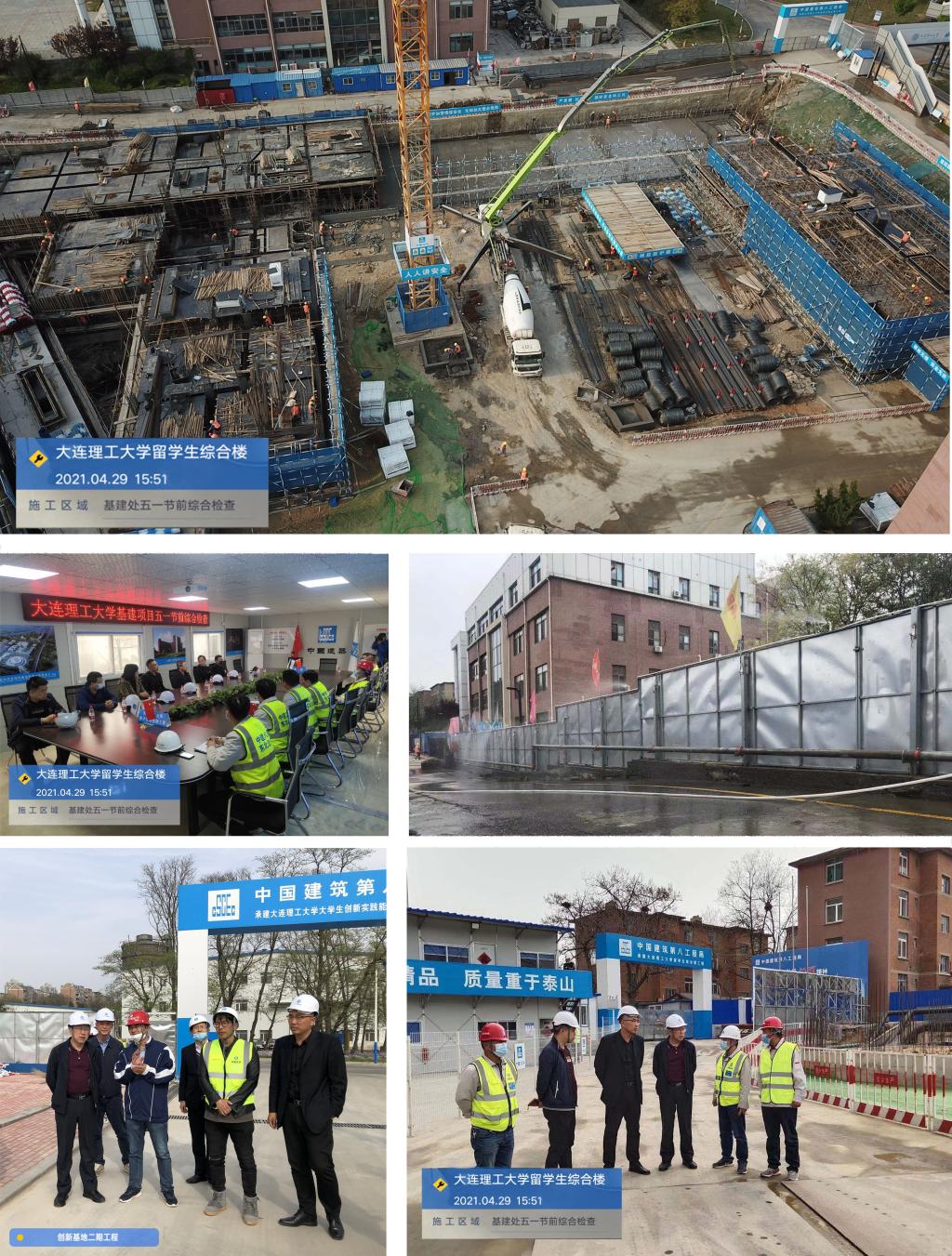 五一劳动节将至,为做好节假日期间安全生产工作安排,有效防范各类突发事件的发生,确保基建项目安全生产工作持续稳定进行, 4月29日下午,大连理工大学基建处开展基建项目五一节前综合大检查。基建处李昕处长带领处班子成员及项目组对留学生综合楼项目和大学生创新实践能力训练基地项目二期工程项目施工现场进行安全检查,大工监理、泛华监理及中建八局主要管理人员现场陪同检查。
