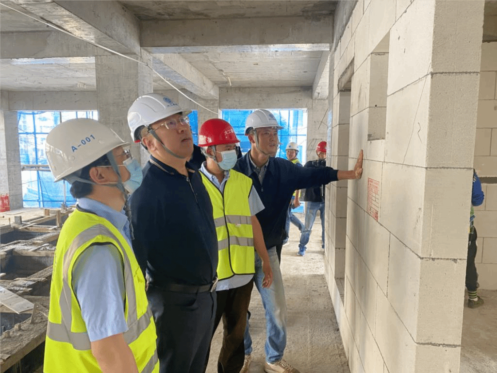 检查组进入施工现场,分组对安全生产、文明施工、临时用电、消防设施及工程实体进行检查,同时实地察看了砌筑实体样板。项目总监张毅、中建八局邵剑波分别从工期、质量、安全等方面详细介绍了工程进展情况,并汇报了项目开展的相关管理举措。检查组针对现场实体样板工艺及图纸设计展开了深入交流。