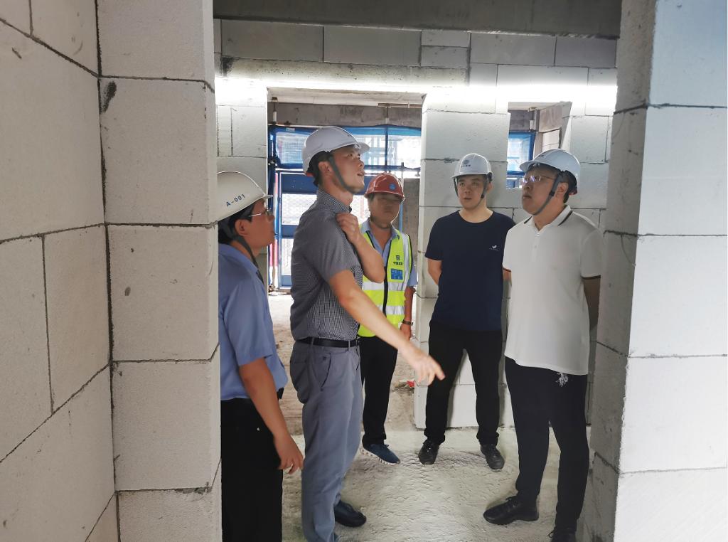 留学生综合楼项目于8月1日完成封顶,进入二次结构及机电安装施工阶段。中建八局项目部对疫情防控情况、现场进度、质量情况进行简要汇报,基建处对现场实体质量进行检查,并对现场的进度及实体质量给予了肯定,强调疫情期间一定要坚持防疫常态化管理,加强现场管控,按照既定进度计划完成施工任务。