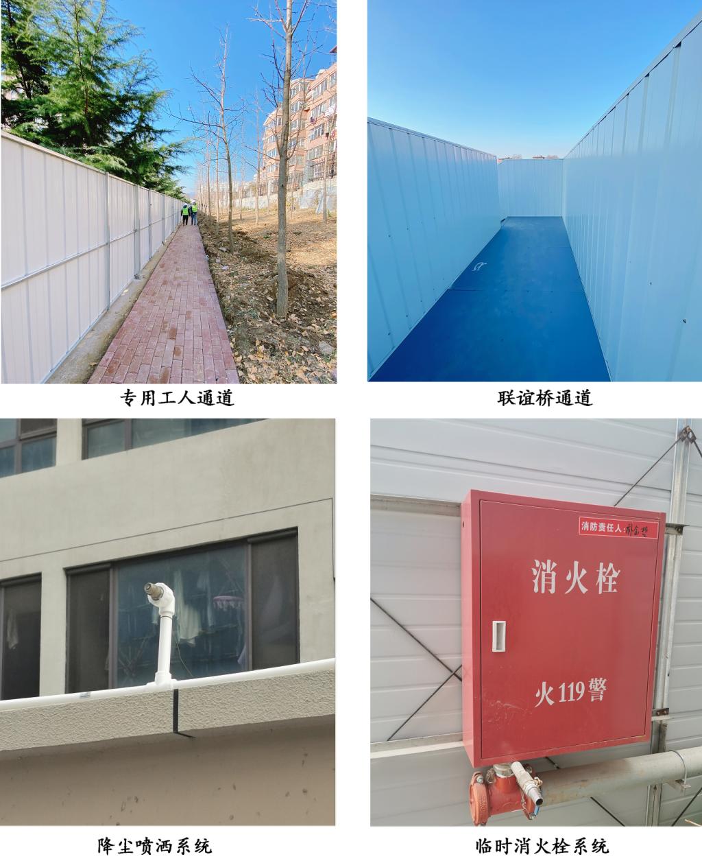 留学生综合楼工程、创新实践能力训练基地项目二期工程,施工场地专门开设了人员进出校园专用通道,保证了工程施工人员与校内人员分隔;设置了绿化和喷淋,有效控制了扬尘;配置了消防环路和消防设施,防患于未然;根据师生作息时间调整施工时间,减少了对师生的影响。