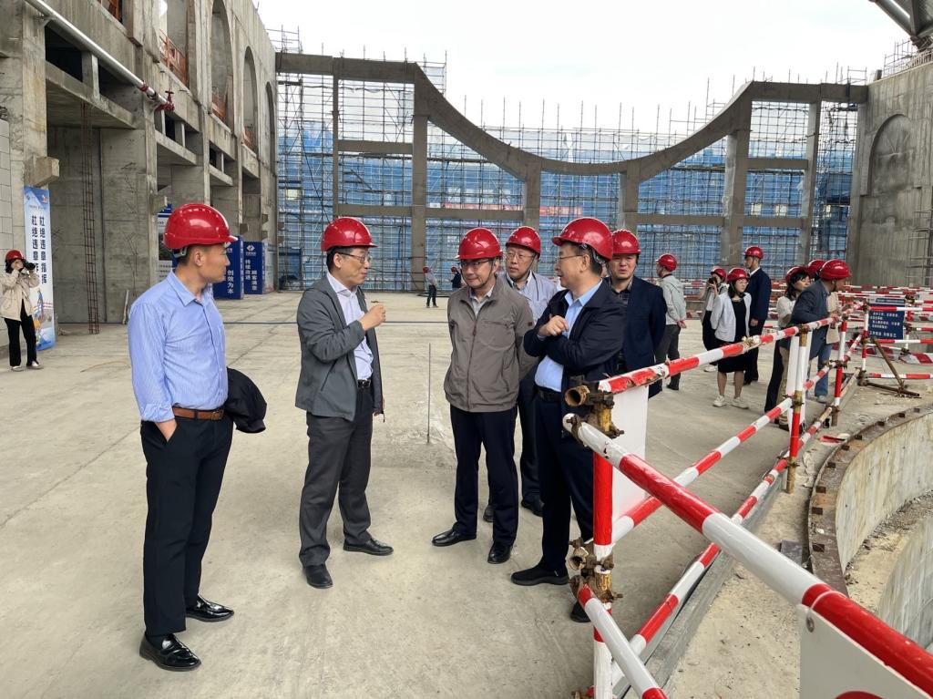 调研组随后来到位于杭州市余杭区未来科技城的超重力实验室。在项目建设现场,调研组与工程建设指挥部开展座谈。工程部副总指挥朱宇恒同志介绍了实验室建设基本情况,工程进展以及项目重点和难点。我校基建处李昕处长介绍了即将开始建设的深海工程实验室项目,双方分享了各自的经验和做法。