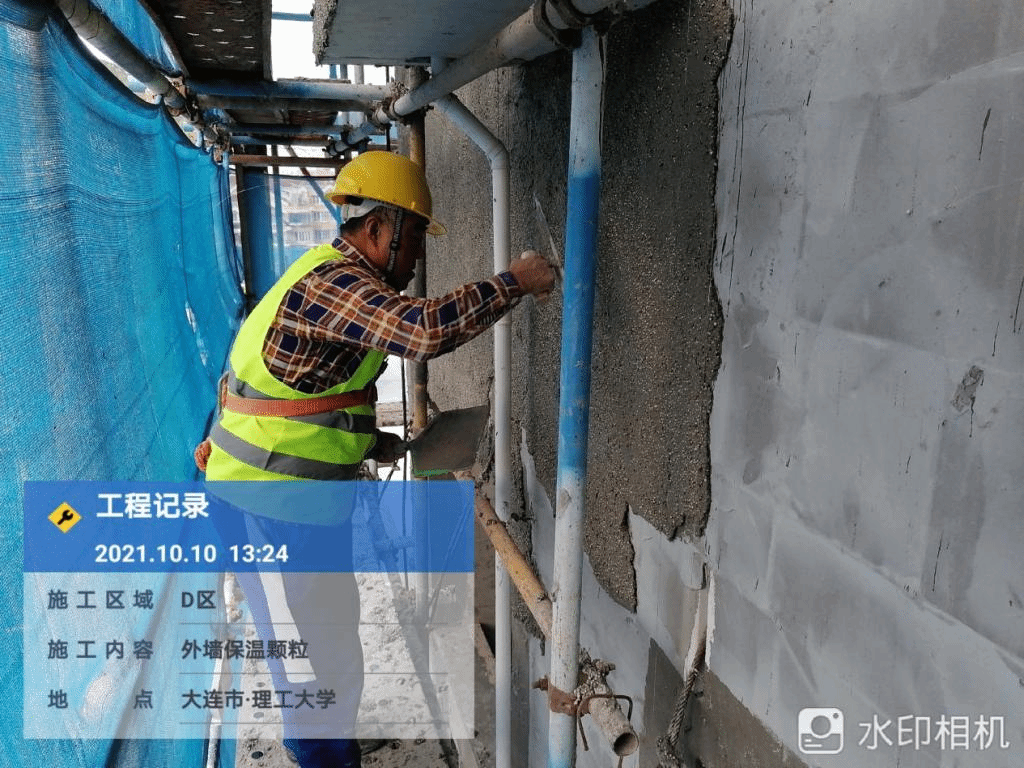 外墙保温施工完成,开始进行外墙质感涂料底漆施工。室内地热管线安装施工。墙面抹灰开始施工。屋面SBS防水卷材施工完成。 |