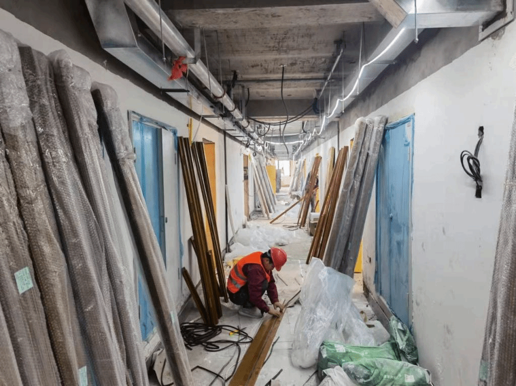 室内墙砖、地砖粘贴完成。室内石膏板吊顶安装完成。室内木门安装完成50%。市政外线开始进行管线施工。 |